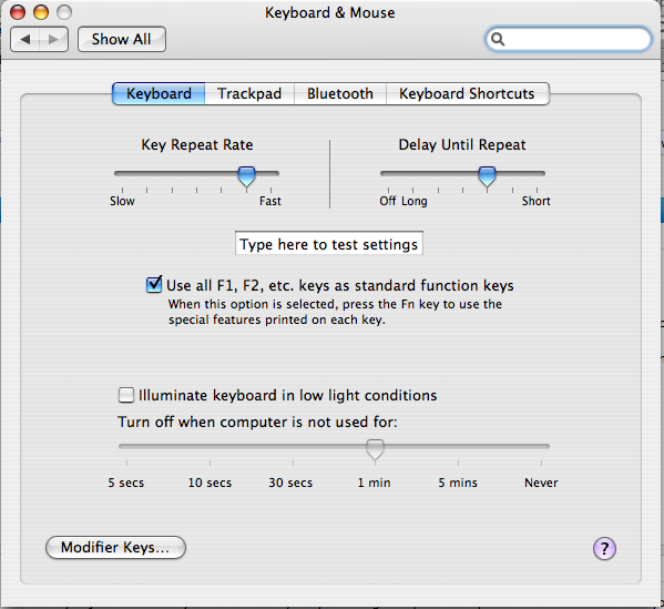 P.S. For those of you experiencing Function key issues in OS X, go to your System Preferences, and under "Keyboard and Mouse", make sure the Fn key option is set correctly (see picture below: may differ slightly from your version).